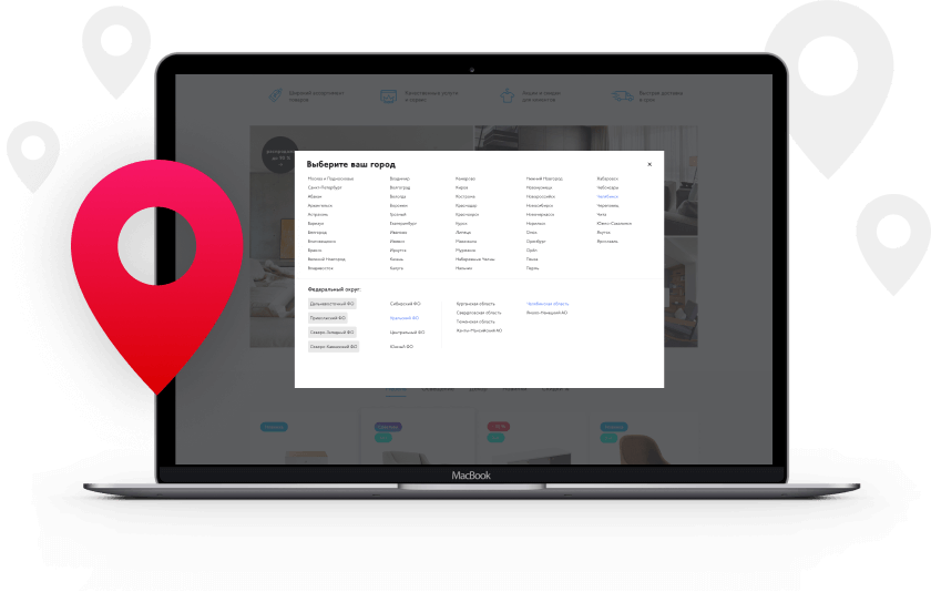 Модуль INTEC: Мультирегиональность для «1С-Битрикс» позволяет предоставлять пользователям вашего интернет-магазина актуальную информацию по их региону: контакты магазинов, остатки товаров по складам, региональные скидки, региональные цены на товар и т.д. Это оптимальный вариант для крупных интернет-магазинов со множеством представительств в разных регионах.